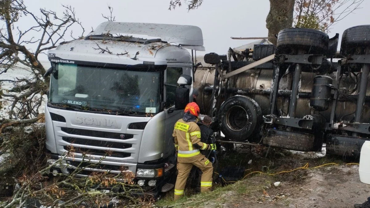 - Ze wstępnych ustaleń policjantów pracujących na miejscu zdarzenia wynika, iż kierujący cysterną 61-latek nie dostosował prędkości do warunków panujących na drodze, zjechał na pobocze i wywrócił pojazd do przydrożnego rowu. W tym samym miejscu doszło do kolejnego zdarzenia. Kierujący busem marki Renault zatrzymał się przed leżącą cysterną i w tył jego pojazdu wjechał 18-latek, kierujący Oplem - informuje podkomisarz Kamil Karbowniczek z KWP w Lublinie.