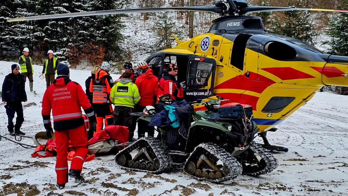58-latek w wyniku upadku doznał poważnych obrażeń. Został przetransportowany śmigłowcem Lotniczego Pogotowia Ratunkowego do szpitala. Jego życiu nie zagraża niebezpieczeństwo.