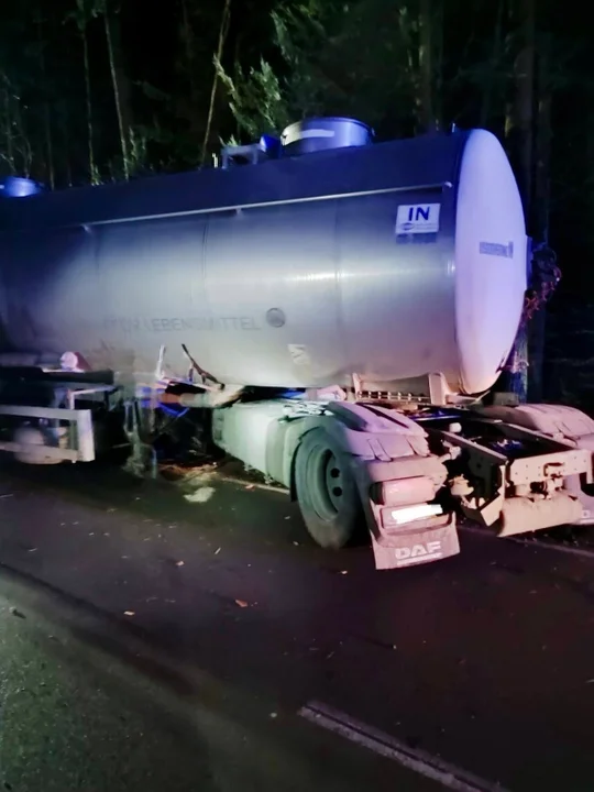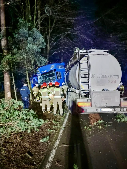 -Na trasie Zwierzyniec Biały Słup - Józefów samochód ciężarowy, cysterna uderzył w drzewo. Kierowca wyszedł cało bez większych obrażeń, przejął go ZRM przybyły na miejsce. Strażacy zabezpieczyli wyciek oleju ze zbiornika - informują strażacy ze Zwierzyńca.