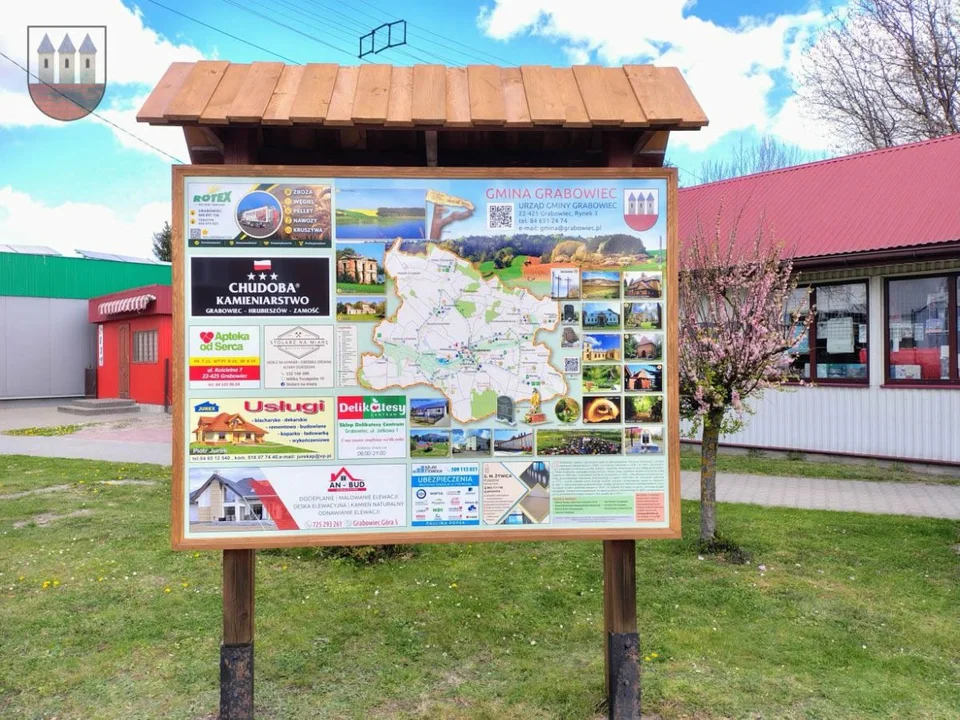 Grabowiec zyskał nowy, estetyczny i niezwykle przydatny element małej architektury. W sercu miejscowości zainstalowano tablicę informacyjną, która łączy w sobie bogatą historię regionu, praktyczne wskazówki dla turystów oraz nowoczesne rozwiązania multimedialne.
