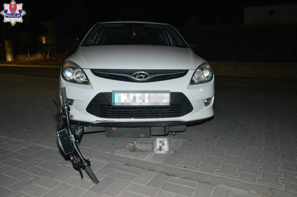 Hyundaiem kierowała 40-latka z Zamościa. Policyjne badanie alkomatem wykazało, że zarówno kierująca pojazdem jak i użytkownik hulajnogi byli trzeźwi.