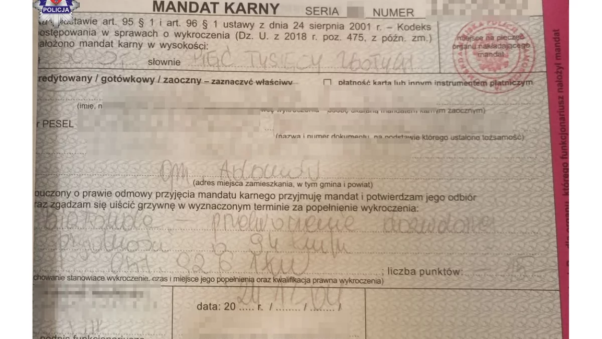 - To oczywiście musiało skutkować zatrzymaniem do kontroli.Audi kierował 29-letni mieszkaniec gminy Adamów. Po sprawdzeniu w systemach policjanci już wiedzieli, że kwota mandatu będzie dwa razy większa, bo 29-latek popełnił wykroczenie w warunkach recydywy. Oprócz utraty prawa jazdy na trzy miesiące za zbyt dużą prędkość w obszarze zabudowanym, kierowca ma do zapłaty 5000 złotych mandatu, a na jego konto wpłynęło 15 punktów karnych - informuje podkomisarz Dorota Krukowska – Bubiło z KMP w Zamościu.