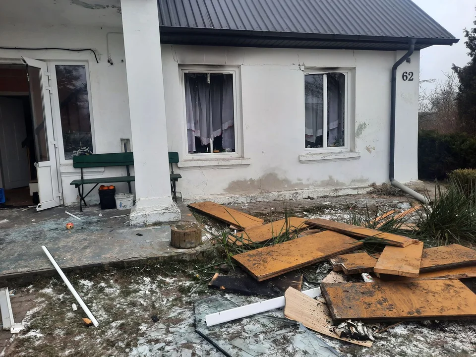 Po wybuchu gazu w budynku mieszkalnym, doszło do zniszczenia stolarki okiennej i drzwiowej, części stropu pomiędzy kondygnacjami. Zniszczone są pomieszczenia wewnątrz budynku, także instalacje: grzewcza, elektryczna i wodno-kanalizacyjna.
