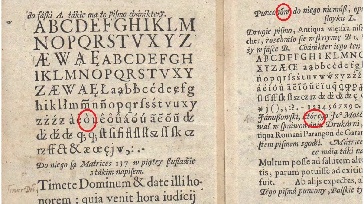 - To właśnie w Zamościu po raz pierwszy użyto w druku literki o z kreską czyli ó. Miało to miejsce w 1654 r. kiedy ukazał się w druku tekst Mikołaja Świrskiego pt. Kazanie na Uroczystość Zwiastowania Panny Najświętszej przy katedrze Chełmskiej w Krasnymstawie…, drukowanym w Drukarni Akademii Zamojskiej - przypomina Książnica Zamojska.