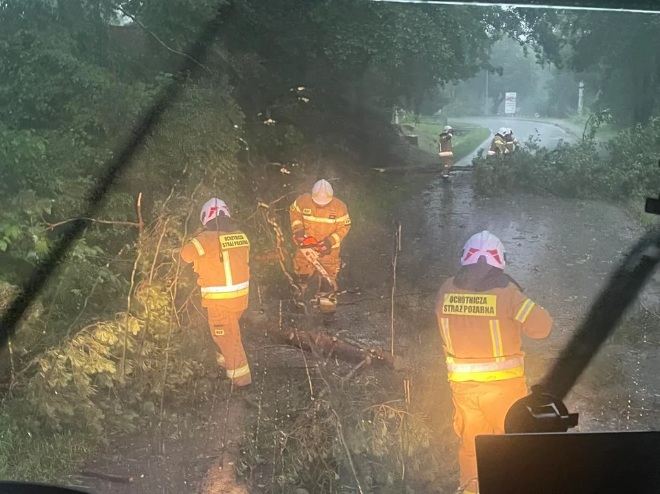 - Zostaliśmy zadysponowani do usunięcia powalonych drzew, które w wyniku silnej burzy zablokowały drogę w miejscowości Hutki (gm.Krasnobród). Na miejscu działania polegały na zabezpieczeniu terenu i usunięciu zalegających konarów, aby przywrócić przejezdność - informuje OSP Krasnobród.