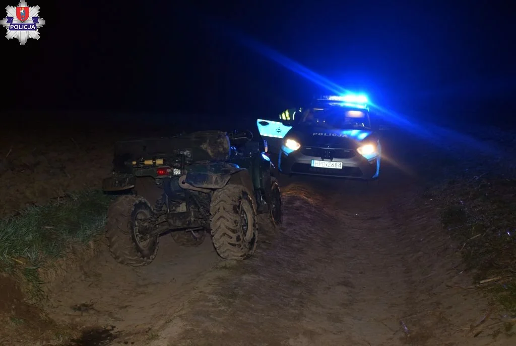 Ze zgromadzonych informacji wynika, że kierujący quadem marki Yamaha 34-latek z gminy Zamość jadąc drogą gruntową wjechał w koleinę, co spowodowało, że stracił panowanie nad pojazdem i uderzył w skarpę. Czterokołowiec przewrócił się przygniatając mężczyznę, wydostały go osoby postronne. 34-latek prawdopodobnie podróżował bez kasku ochronnego. Nie odniósł obrażeń.