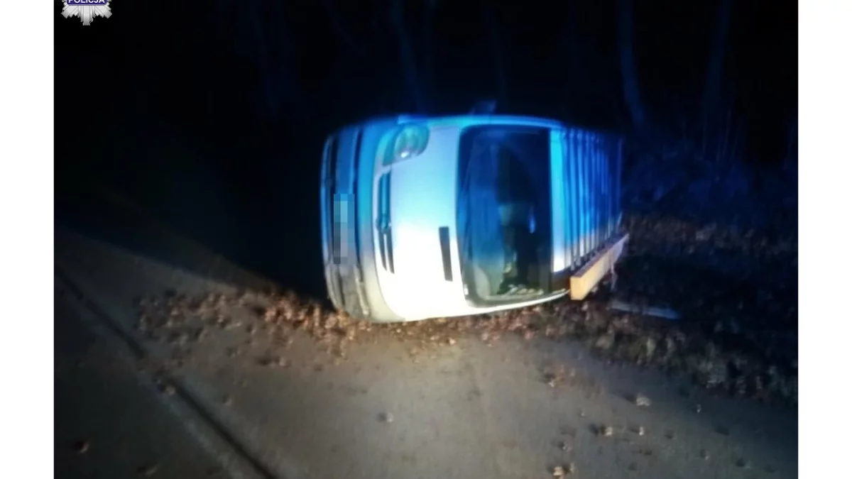 Policjanci z Posterunku Policji w Miączyna patrolując gminę Grabowiec w miejscowości Tuczępy zauważyli przewrócony na jezdni samochód typu bus marki Opel Vivaro.