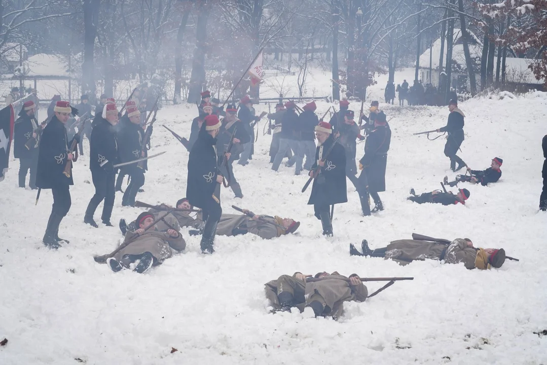 Grupy rekonstrukcyjne zapraszają już o 13.00 na otwarcie powstańczego obozu, który stanie przy kościele "na wodzie". Miłośnicy historii pokażą w nim jak wyglądało życie obozowe, w tym zwyczaje i rytuały, na przykład pożegnanie powstańca, przysięgę, odlewanie kul i przygotowanie broni do walki. Około 13.30 patrol powstańczy wyruszy z obozu, napotykając po drodze oddział maruderów rosyjskich. W wyniku walk powstańcy będą musieli wycofać się w kierunku kościelnej dzwonnicy, a potem bronic obozu.