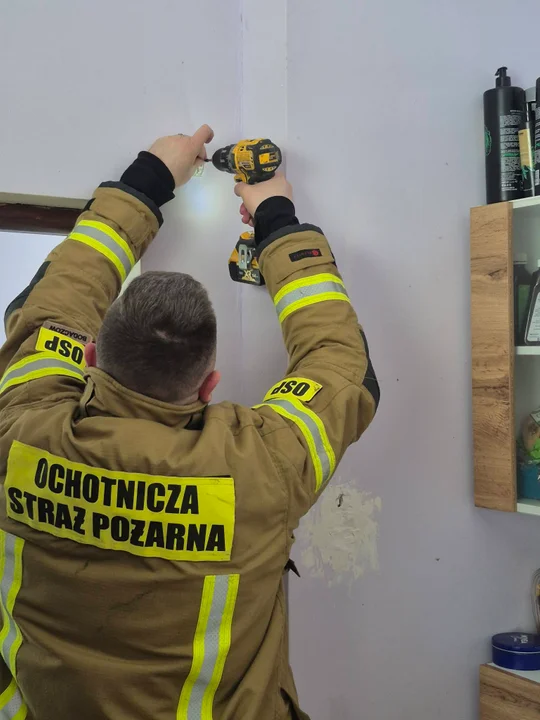 Strażacy i pracownicy OPS nie tylko montują sprzęt, ale przede wszystkim uświadamiają, że bezpieczeństwo nie musi być luksusem.
