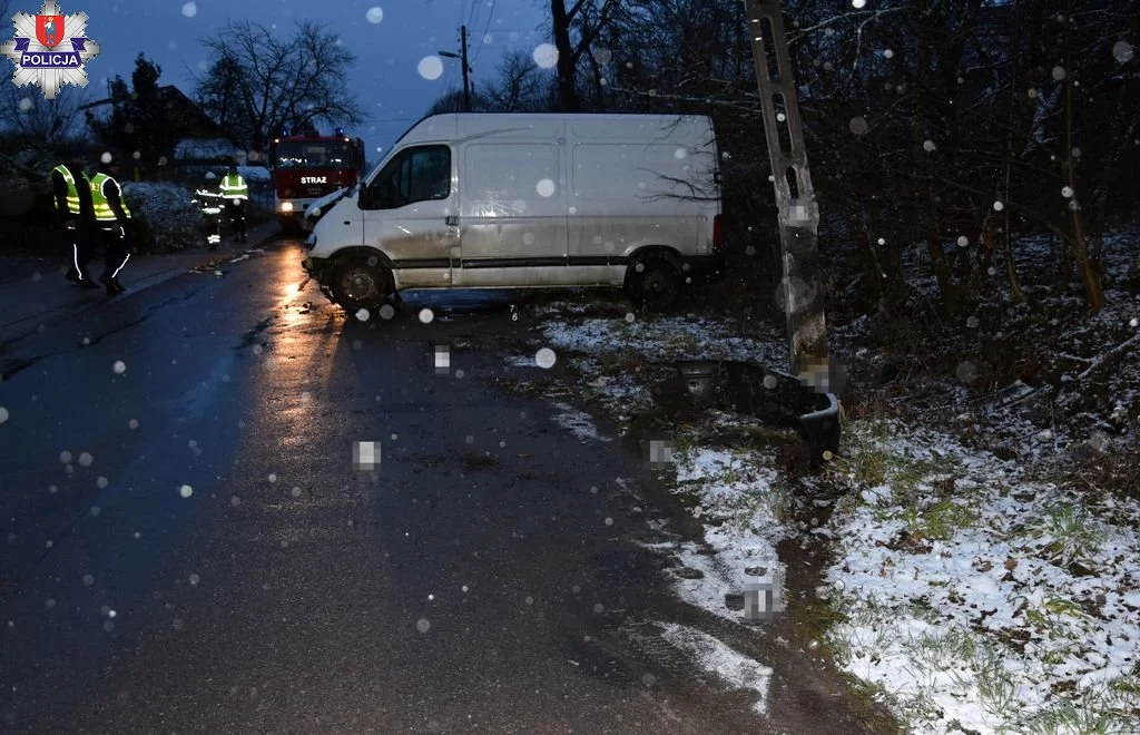 Policjanci z Komisariatu Policji w Szczebrzeszynie, realizując polecenie oficera dyżurnego zamojskiej komendy, pojechali do miejscowości Turzyniec w gminie Zwierzyniec, gdzie auto dostawcze wjechało w słup elektryczny. Funkcjonariusze na miejscu wstępnie ustalili, że kierujący Renault Master nie dostosował prędkości do panujących na drodze warunków, wpadł w poślizg i uderzył w znajdujący się przy drodze słup linii energetycznej.