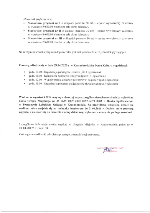 Gmina Krasnobród oficjalnie otwiera sezon na wielkie plany biznesowe, ogłaszając pierwszy ustny przetarg nieograniczony na dzierżawę atrakcyjnych terenów położonych bezpośrednio nad tutejszym zalewem. Choć do lata pozostało jeszcze sporo czasu, samorząd już teraz szuka kreatywnych gospodarzy, którzy zagospodarują gminne działki w nadchodzącym sezonie turystycznym 2026 roku. To strategiczny ruch, który ma pozwolić przedsiębiorcom na spokojne przygotowanie oferty i infrastruktury przed spodziewanym najazdem letników na serce Roztocza.