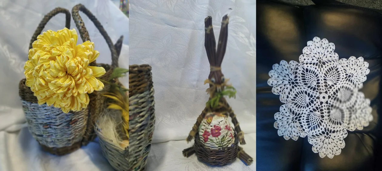Rękodzieło zostało wykonane z wymagającej techniki, jaką jest papierowa wiklina: koszyki, koszyczki, a nawet przedstawienia figuratywne ,czy florystyczne (kwiaty).